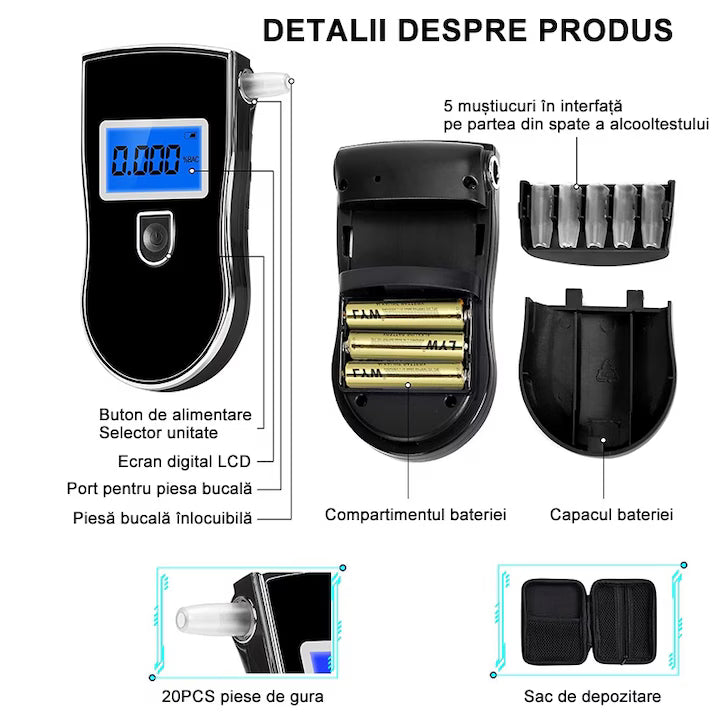 Alcooltest Digital Portabil cu LCD, Senzor Avansat si Avertizare Audio