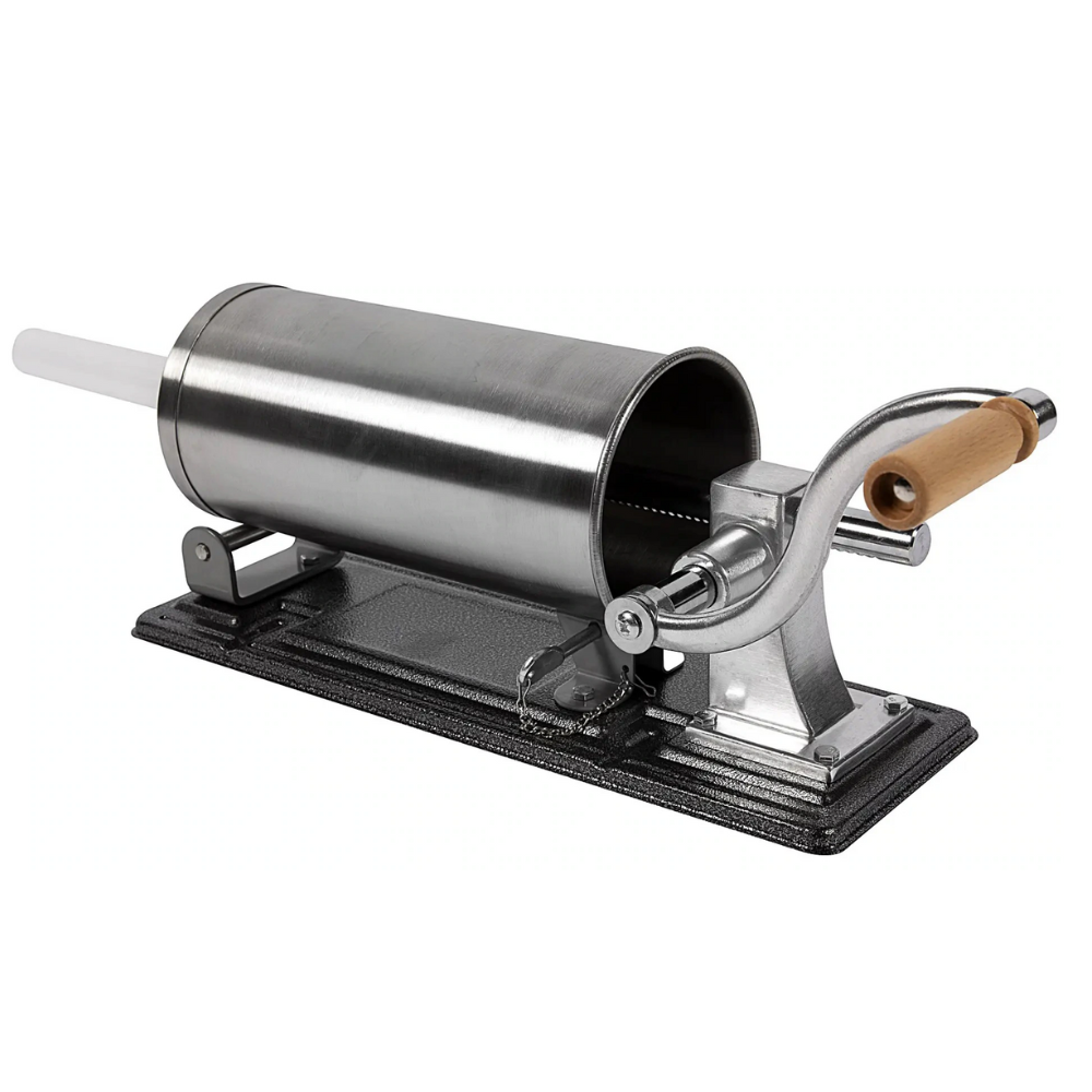 Masina de umplut carnati orizontala din inox 5.5Kg cu 5 palnii incluse