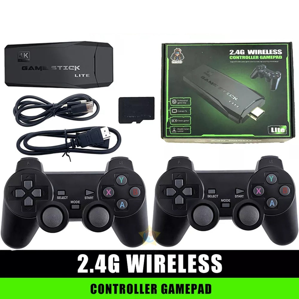 Consola jocuri wireless 4K HDMI cu 2 controllere, compatibila Smart TV si monitoare prin cablu HDMI. Memorie interna 64GB cu peste 10000 jocuri retro si clasice preinstalate. Design compact, butoane 3D mari, motoare vibratoare, indicator LED si conectivitate wireless 2.4G cu zero lag. Conectare rapida plug and play la orice TV, monitor sau proiector cu port HDMI.