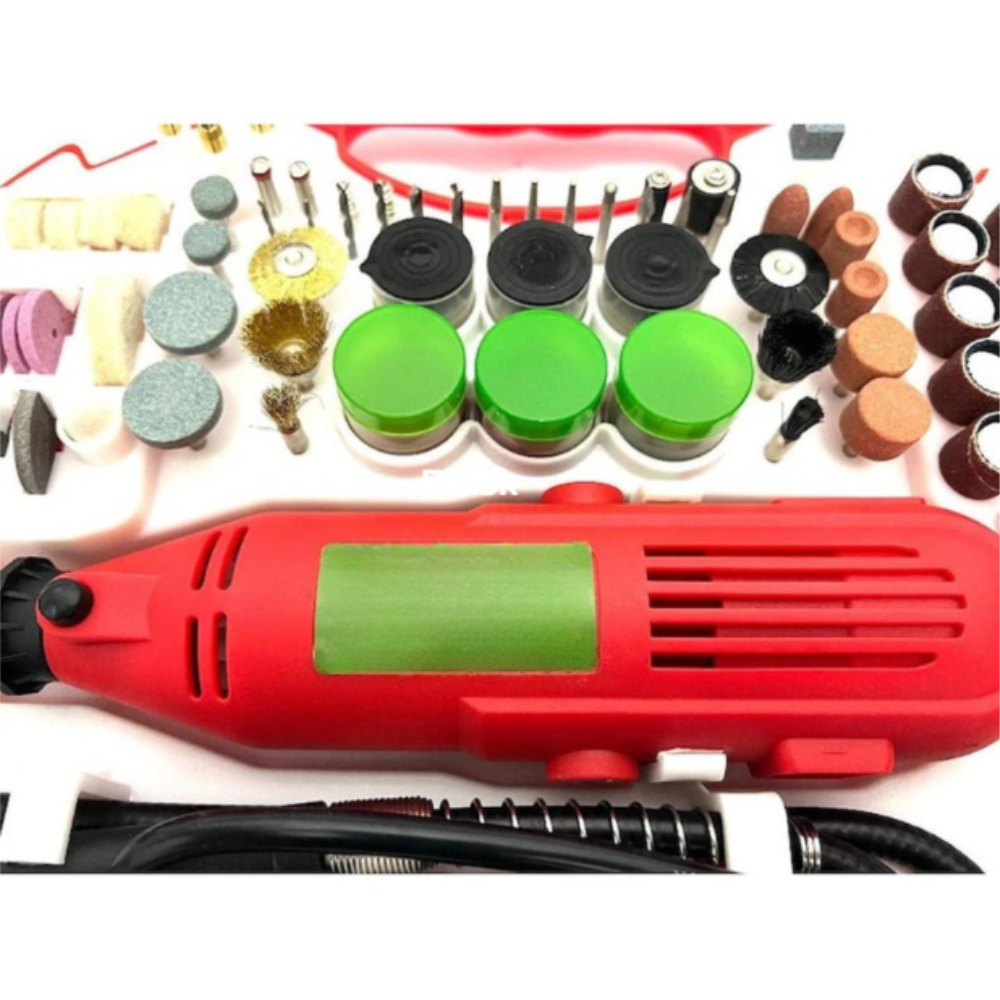 Masina de Gravat 500W cu 117 Accesorii – 12000 RPM, Variator Turatie, Rosu