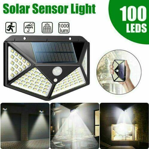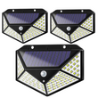 Set 3 lampi solare 100 LED cu senzor de miscare si lumina, rezistente la precipitatii, ideale pentru curte, terasa si zone exterioare