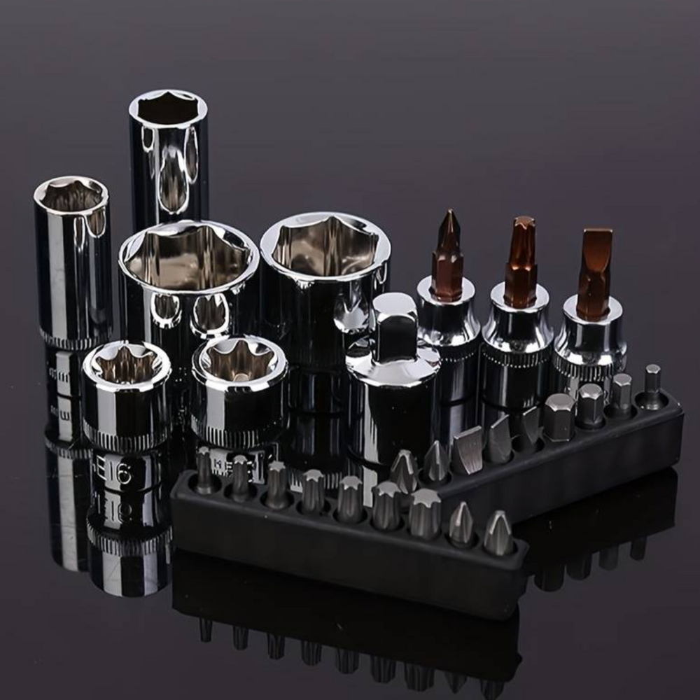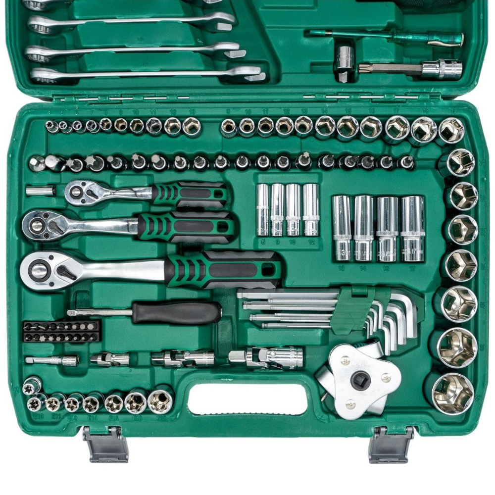 Setul de scule constă din 121 elemente plasate într-o carcasădin plastic. Uneltele sunt realizate precis din materiale care le asigură fiabilitatea. Setul include o gamă completă de tubulare lungi și scurte de 1/4", 3/8" și 1/2", prelungitoare, articulații cardanice și multe alte elemente, inclusiv clichete cu 45 de dinți. Potrivită pentru lucrări de asamblare, reparații mecanice și alte lucrări. în gospodărie sau atelier.