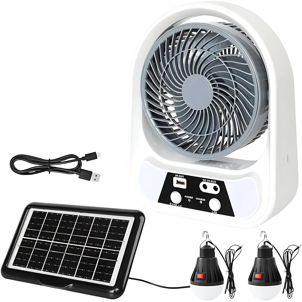 Descopera ventilatorul solar portabil 3 in 1, creat special pentru confort si autonomie oriunde te-ai afla. Cu un design compact de masa, acest aparat combina racirea eficienta, iluminarea LED si functia de powerbank, devenind un instrument indispensabil in camping, drumetii, birou sau situatii de urgenta.